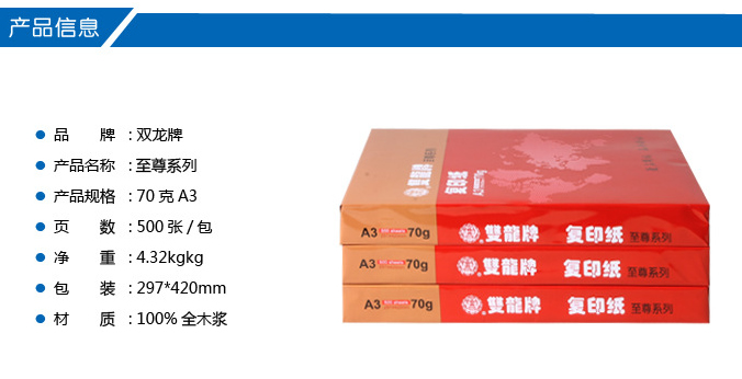 雙龍70克A3經(jīng)典系列打印復印紙